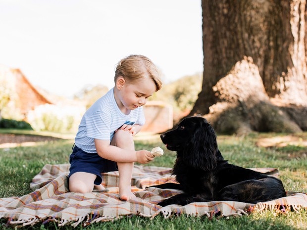 O Palácio de Kensington divulgou nesta sexta-feira (22) fotos do príncipe George para marcar o seu aniversário de 3 anos do terceiro na linha de sucessão ao trono britânico. Em uma delas ele está brincando com o cachorro da família, Lupo. As fotos foram tiradas ao longo do mês de julho.