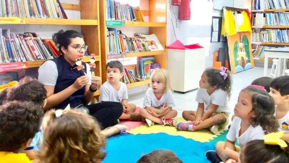 A professora Natália Marques, do Instituto Educacional Casa Escola, em Natal, precisou reinventar sua forma de ensinar em 2020. No início do ano, as aulas de contação de histórias eram com livro na mão, crianças em roda e muita interação.