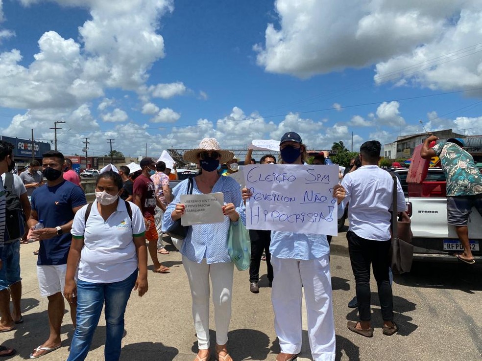 Pela manhã, o protesto foi realizado na frente do Fórum Municipal Desembargador Danilo Barbalho Simonetti. Os trabalhadores gritaram pela autorização da festa e reclamavam do prejuízo caso o evento não venha a acontecer. “Queremos trabalhar” e “Quem vai pagar minhas contas?”, apontavam alguns dos cartazes.