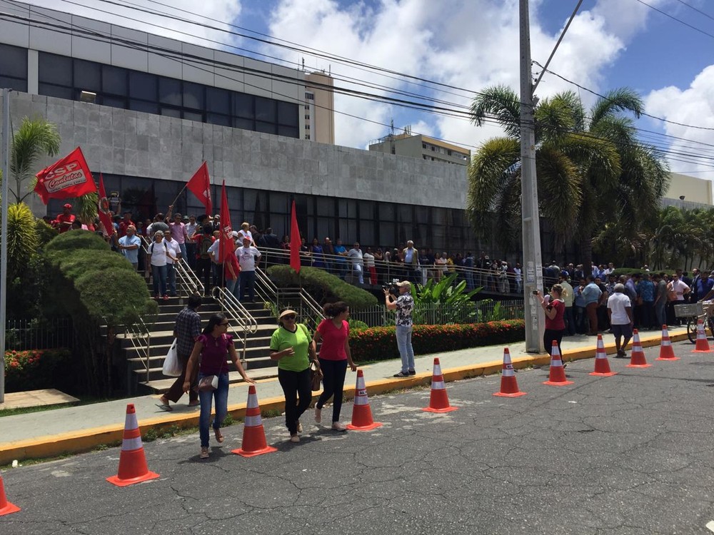 Manifestantes bloquearam as entradas principal e lateral da Assembleia Legislativa do Rio Grande do Norte, na manhã desta sexta-feira (8), em protesto contra a sessão solene que homenageará Rogério Marinho, secretário Especial da Previdência e do Trabalho, do Ministério da Economia.