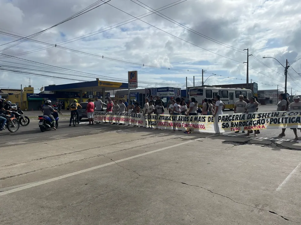 Um protesto realizado por funcionários de uma indústria de confecções fechou parte da avenida Tomaz Landim, entre o viaduto do gancho e a ponte de Igapó, na manhã desta segunda-feira (11), na Grande Natal.