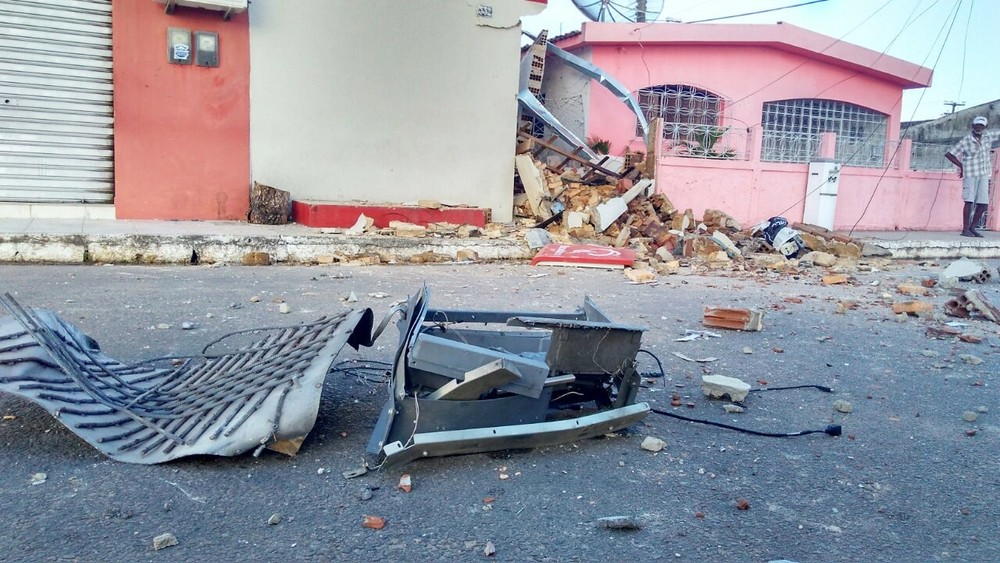 Além das quatro explosões ouvidas pelos moradores, a cidade foi acordada pelos barulhos de tiros. Enquanto parte do bando efetuava disparos contra a delegacia da cidade, onde também funciona a base da PM, outra se encarregava de atacar a agência. A ação foi registrada por volta das 3h. A agência ficou destruída com a força da explosão. O teto do prédio desabou.