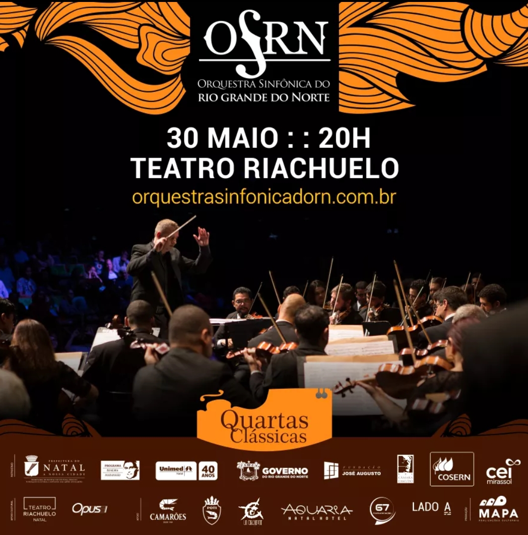 Depois da vibrante apresentação realizada no mês passado, que lotou o Teatro Riachuelo e contou com a presença de convidadas espanholas, a Orquestra Sinfônica do Rio Grande do Norte – OSRN não cansa de promover relevantes intercâmbios musicais em Natal. Para o próximo concerto do projeto Movimento Sinfônico – Quartas Clássicas, marcado para o dia 30 de maio, a OSRN convida o maestro Marlon Chen (Taiwan) e o solista violino, Emmanuele Baldini (Itália). A entrada é gratuita e o concerto acontece a partir das 20h.