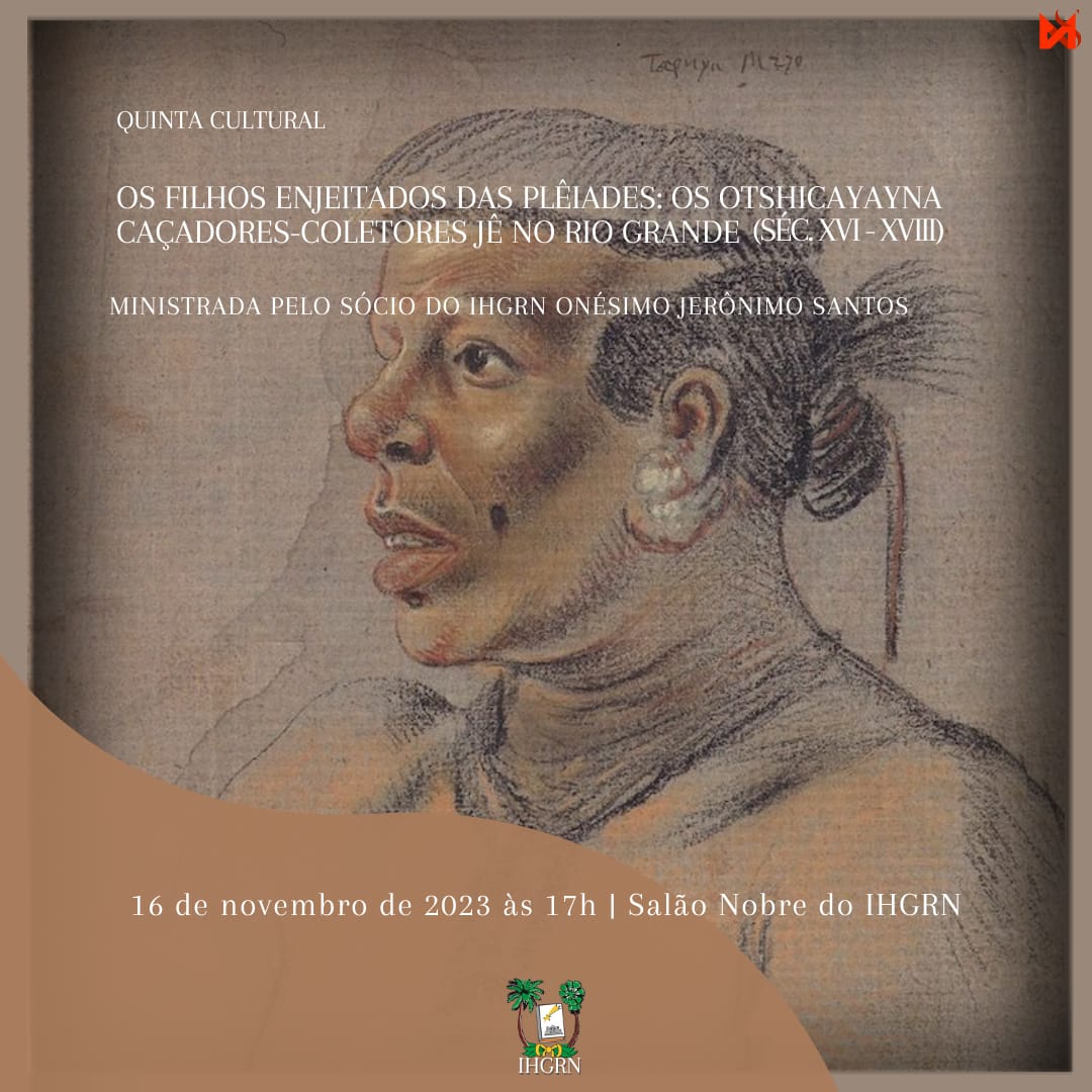 Nata quinta cultural de de hoje (16) do Instituto Histórico Geográfico do Rio Grande do Norte (IHGRN), Onésimo Jerônimo Santos ministrará uma palestra com a temática: “Os filhos enjeitados das plêiades: os otschicayayna caçadores-coletores jê no Rio Grande (Séc. XVI – XVIII). O evento ocorre às 17h, no Salão Nobre da sede do IHGRN.
