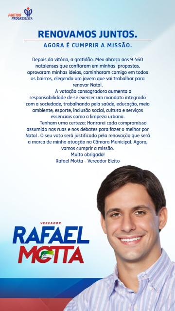Rafael Motta agradece aos natalenses pela sua votação