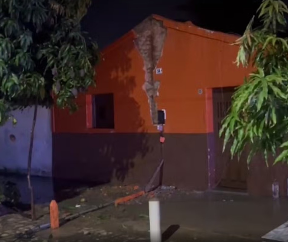 Um vídeo mostra a parede da casa quebrada e a haste no chão, o que levou a Polícia Militar a isolar a área para garantir a segurança dos moradores e esperar a chegada da equipe da Neoenergia Cosern.
