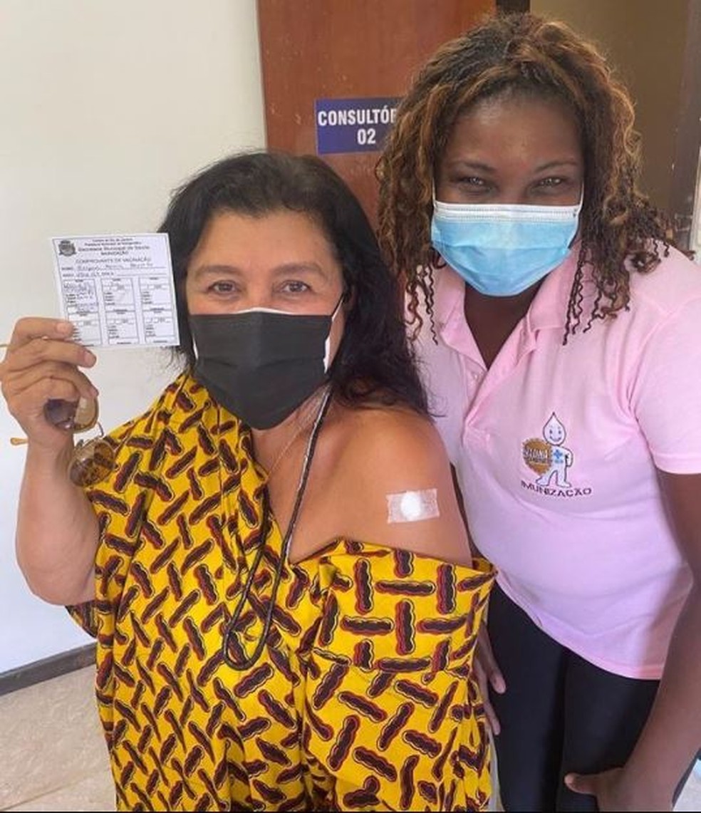 A atriz Regina Casé foi vacinada nessa segunda-feira (29) em Mangaratiba, na Região Metropolitana do Rio de Janeiro.