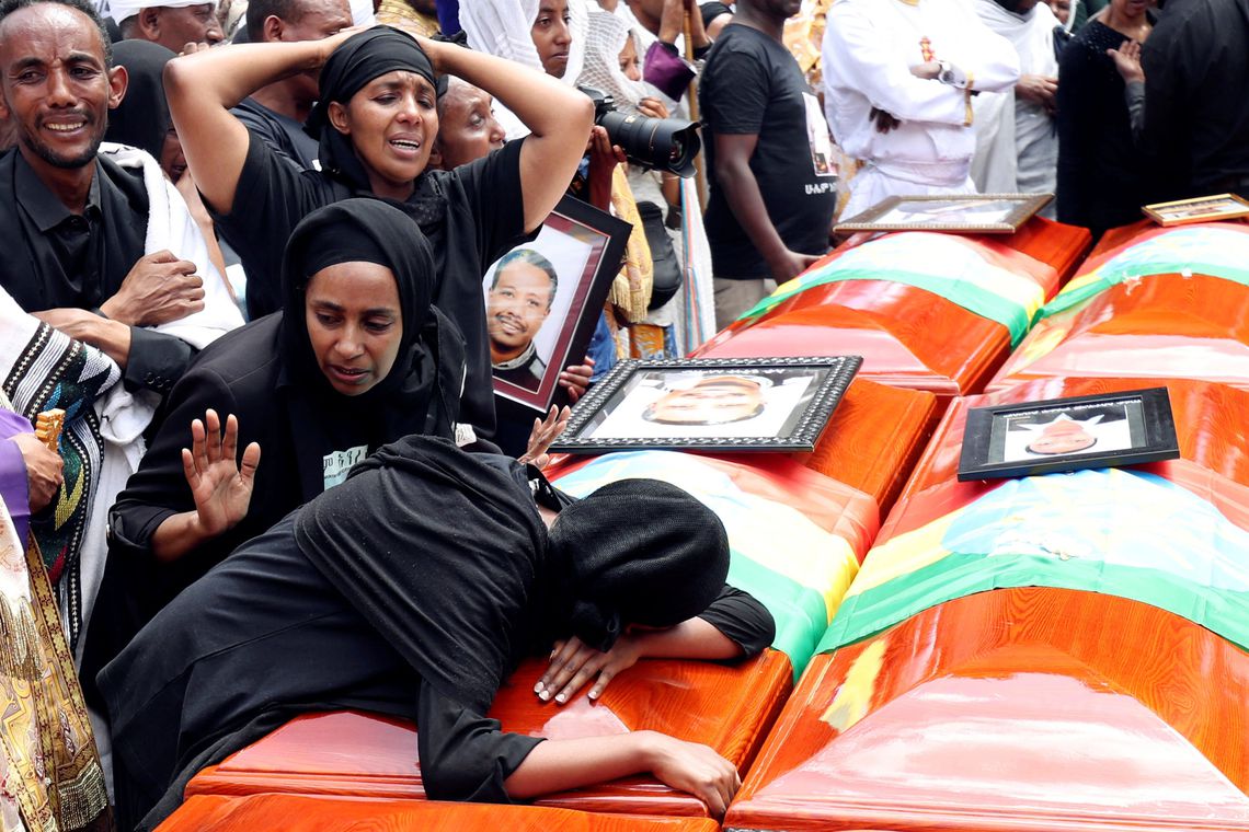 Women mourn next to coffins during the burial ceremony of the Ethiopian Airlines Flight ET 302 crash victims at the Holy Trinity Cathedral Orthodox church in Addis Ababa, Ethiopia, March 17, 2019. REUTERS/Tiksa Negeri