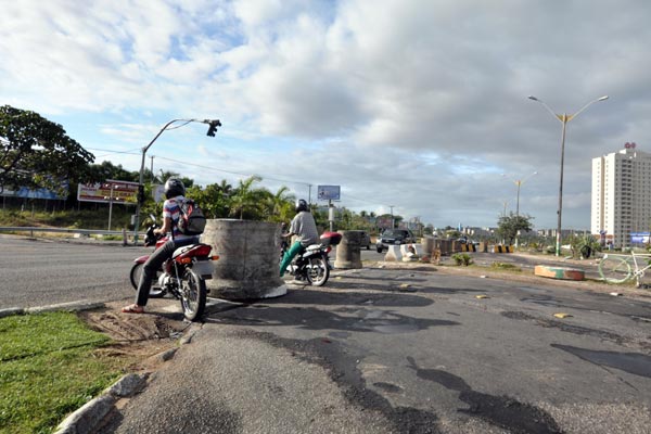 Praticamente um dia após o acidente que derrubou os postes de sustentação dos semáforos que controlavam o trânsito para a entrada de Nova Parnamirim, na BR-101, a via continua bloqueada. Porém, até o momento em que a reportagem esteve no local, na manhã desta sexta-feira (22), o tráfego fluía normalmente. Com o retorno na altura de Cidade Satélite fechado com blocos de concreto, quem sai de Nova Parnamirim com destino ao Aeroporto Augusto Severo ou ao centro de Parnamirim é obrigado a fazer o retorno no Viaduto de Ponta Negra, a 3,4 quilômetros da avenida Maria Lacerda Montenegro.