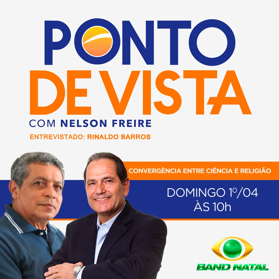 O Programa Ponto de Vista com Nelson Freire recebe o sociólogo e professor Rinaldo Barros. Ele vai falar sobre a “Convergência entre a Ciência e a Religião“. Domingo, âs 10h da manhã, na Band.