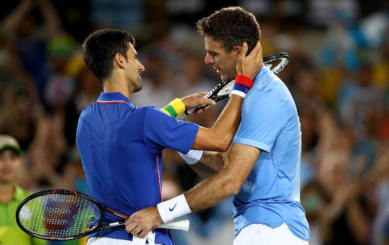 O sérvio Novak Djokovic, número um do tênis mundial, está fora da disputa de simples no tênis dos Jogos Rio 2016. Ele foi eliminado ontem (7) pelo argentino Martin del Potro por 2 sets a 0, com um duplo 7/6, no Centro Olímpico de Tênis. Juan Martin Del Potro já havia sido o algoz de Djokovic nos Jogos Londres 2012. Na ocasião, os dois se enfrentaram na disputa pela medalha de bronze, e o argentino levou a melhor. Quatro anos antes, em Pequim 2008, o sérvio ganhou a medalha de bronze diante do americano James Blake, após perder para Rafael Nadal na semifinal.