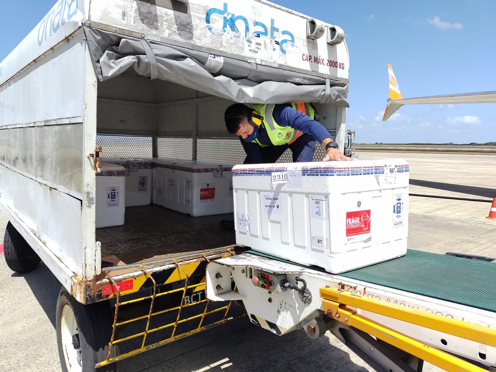 O Rio Grande do Norte recebeu, no início da tarde dessa quinta-feira (26), um carregamento com mais 76.600 unidades de CoronaVac/Butantan, vacina contra a Covid-19.