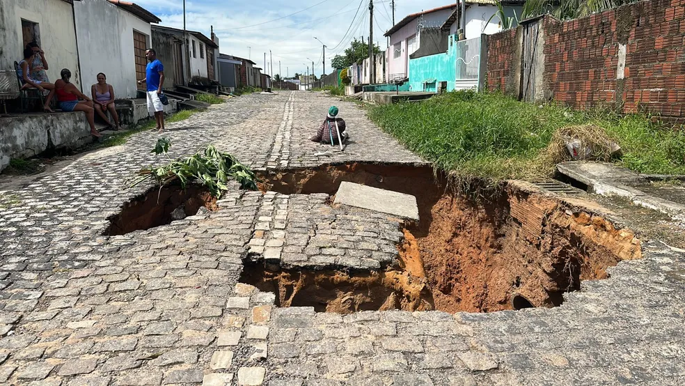 Também neste domingo (9), a força da água da chuva rompeu uma rede de drenagem e causou a abertura de uma cratera no bairro Passagem de Areia, em Parnamirim, na Grande Natal. Ruas da cidade também ficaram alagadas.
