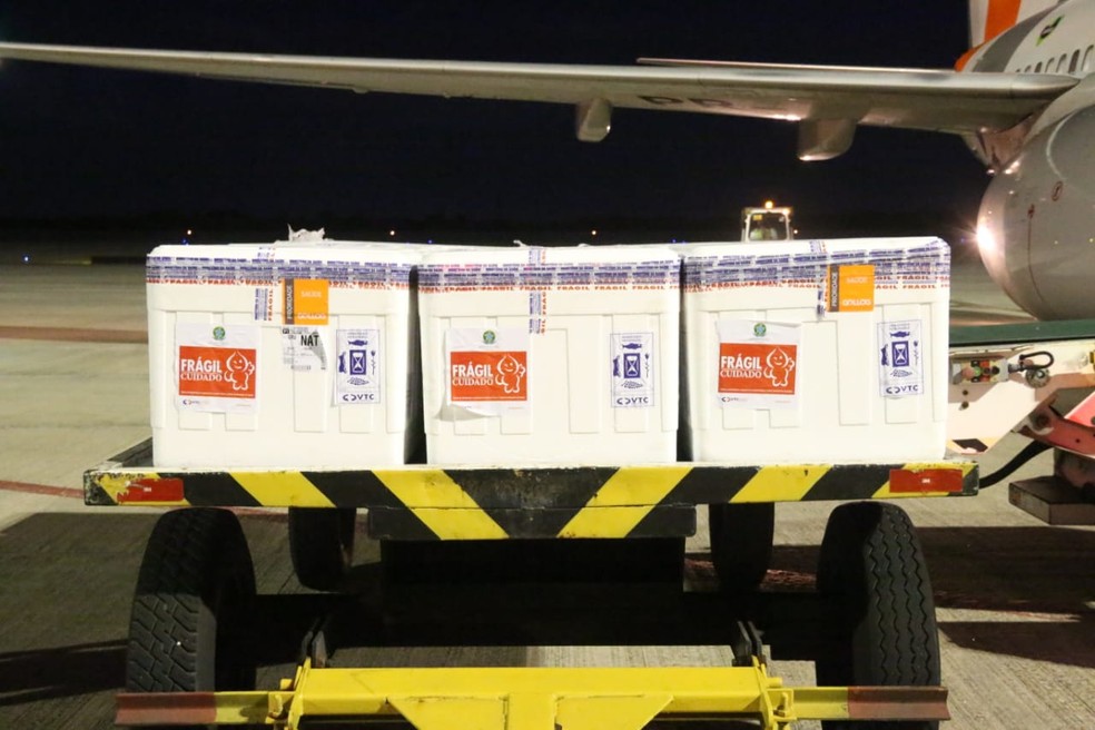 O Rio Grande do Norte recebeu na madrugada desta quarta-feira (26) mais um lote de vacinas contra a Covid-19, com 122.250 de doses da Astrazeneca/Fiocruz.