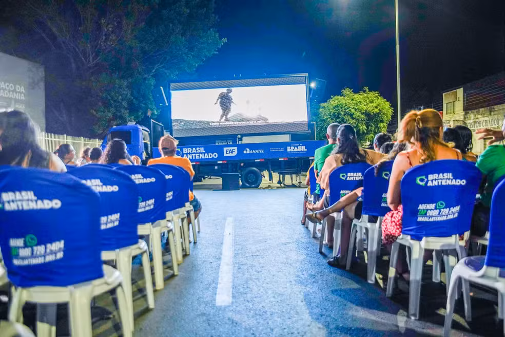 O projeto transforma praças e espaços públicos em salas de cinema a céu aberto, com telão de LED e distribuição gratuita de pipoca. O filme exibido será O Auto da Compadecida 2. Antes da sessão, o público assiste a um vídeo explicativo sobre o Brasil Antenado, programa que garante a instalação sem custo de kits da parabólica digital para famílias inscritas no Cadastro Único (CadÚnico).