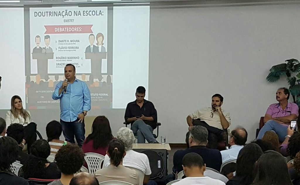 O Instituto Federal do Rio Grande do Norte (IFRN), campus zona Norte, promoveu ontem um debate sobre doutrinação no ensino, evento que fez parte de um projeto de extensão da unidade. E o órgão, além de colocar em pauta um dos temas mais polêmicos da atualidade no país, também quebrou paradigmas ao convidar um político sem viés de esquerda para debater o assunto.