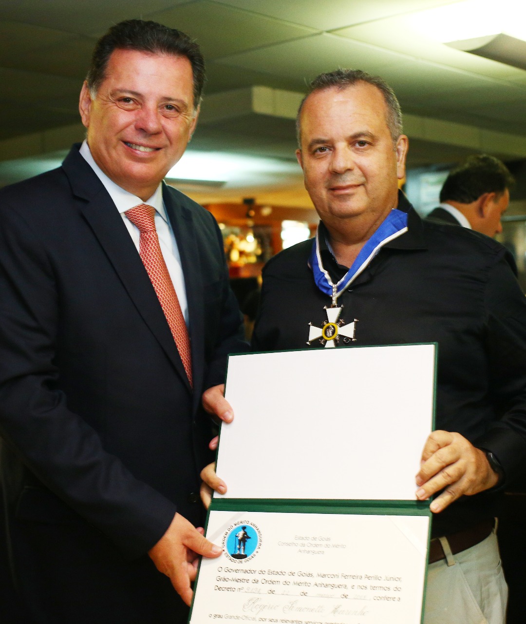 O deputado federal Rogério Marinho (PSDB) recebeu a mais importante honraria concedida pelo Governo de Goiás, a Comenda da Ordem do Mérito Anhanguera. A homenagem foi entregue pelo governador do Estado, Marconi Perillo (PSDB) em solenidade realizada na última segunda-feira (26), em Brasília. A medalha foi entregue em reconhecimento ao trabalho do parlamentar a favor do país como relator da modernização das leis trabalhistas.