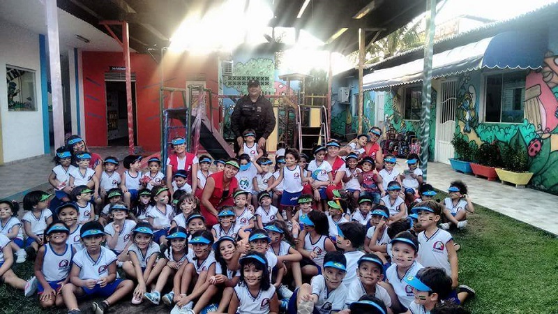 Policiais do 1º Batalhão de Polícia Militar (1º BPM) que atuam no Programa Ronda Cidadã estiveram esta semana desenvolvendo mais uma atividade cívico-social com cerca de 80 estudantes, entre 5 e 10 anos de idades, a convite de uma escola do bairro Pajuçara, na zona Norte de Natal. Durante a atividade, que ocorreu na ultima quinta- feira, “Dia do Soldado”, foram discutidos valores da profissão militar, a importância das forças de segurança para a manutenção da paz social e distribuídas bandeirinhas do Brasil para os alunos. De acordo com o capitão Fábio Sandrine, comandante do Ronda Cidadã em Mãe Luíza, a ação tem como objetivo formar cidadãos conscientes dos valores cívicos, além de promover a interação entre a Polícia Militar e a comunidade . “O Ronda Cidadã está plantando sementes que possibilitarão ver os resultados num futuro breve. A Polícia Militar sempre colaborou com a formação de cidadãos mais conscientes, estreitando o laço com a comunidade, o que faz a população ter uma imagem positiva da nossa instituição e isso é estimulante”, disse o oficial.