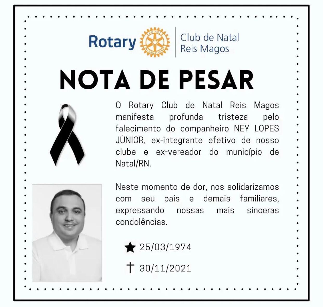 Rotary Club de Natal emite nota de pesar pelo falecimento de Ney Lopes Júnior