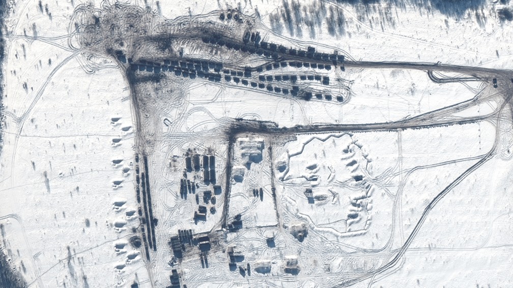 As mais recentes imagens de satélite fornecidas pela empresa de tecnologia espacial americana Maxar mostram atividade militar russa em grande escala persistindo perto das fronteiras da Ucrânia, apesar de o governo russo ter afirmado que está retirando tropas após o fim de exercícios militares.