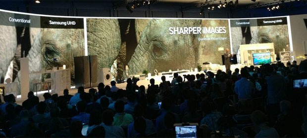 As TVs de tela curva de ultra-alta definição (4K) são a tendência do setor para os próximos meses e para 2014, com fabricantes apresentando modelos que prometem aumentar o conforto de se visualizar imagens. Ao lado da LG, a também sul-coreana Samsung aposta nas TVs de tela curva e apresentou dois novos modelos na feira IFA 2013, que acontece em Berlim, na Alemanha. As TVs de UHD tem 55 e 65 polegadas. Além de a empresa acreditar que a tela curva melhore o conforto do usuário, ela afirma que a qualidade das imagens neste formato é superior. O preço do modelo de 55 polegadas é de 8 mil euros, cerca de R$ 24 mil. O modelo de 65 polegadas não teve o preço revelado. A Samsung diz que irá ouvir a resposta dos consumidores pelos aparelhos para selecionar os mercados onde eles estarão disponíveis.