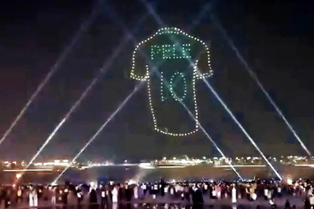 Uma homenagem à memória e ao legado de Pelé é preparada pela Prefeitura de Santos, que promete subir drones aos céus, durante a queima de fogos da virada de ano, na Praia do Gonzaga. A ideia é formar uma imagem que faça referência ao Rei, como aconteceu no Catar, durante a Copa do Mundo.