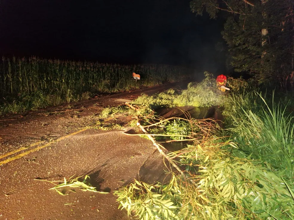 Em Caibi, por volta das 23h, uma árvore caiu na SC-283 e obstruiu totalmente o trecho da rodovia. O eucalipito de approximadamente 10 metros foi cortado para liberar o trânsito.