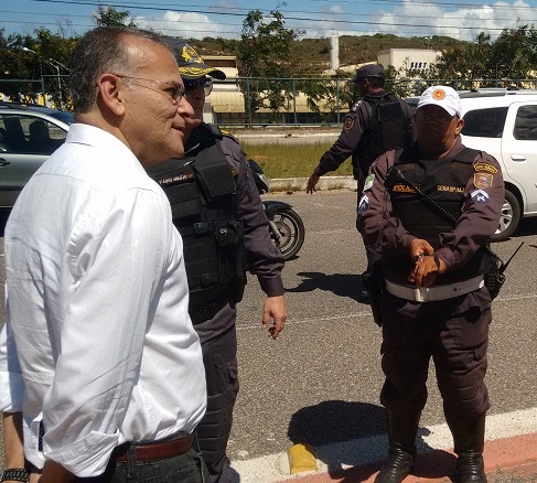O secretário estadual da Segurança Pública e da Defesa Social (Sesed), Ronaldo Lundgren, cumpriu ontem uma extensa agenda nas zonas Oeste, Norte e Leste da capital. Ele iniciou o dia participando de uma blitz, realizada pelo 9º Batalhão de Polícia Militar (9º BPM), em conjunto com as Rondas Ostensivas com Apoio de Motocicletas (Rocam), no prolongamento da Avenida Prudente de Morais, no acesso ao Bairro Pitimbú, na Área Integrada de Segurança Pública 11 (AISP 11). Em seguida, conheceu a sede da 3ª Companhia do 9º BPM, localizado no Bairro Planalto. Em todas as visitas que tem feito aos prédios da Secretaria, Ronaldo Lundgren tem buscando avaliar as condições de trabalho que são disponíveis à tropa.