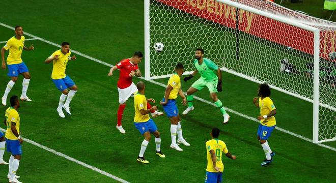 Zuber (autor do gol suíço) empurrou Miranda no gol de empate, mas há outra série de ações a observar no lance: os posicionamentos do próprio zagueiro – defendido por Tite – e a decisão de Alisson de não sair na bola. Não é simples determinar o que ambos deveriam ter feito num lance exaustivamente treinado por qualquer equipe.