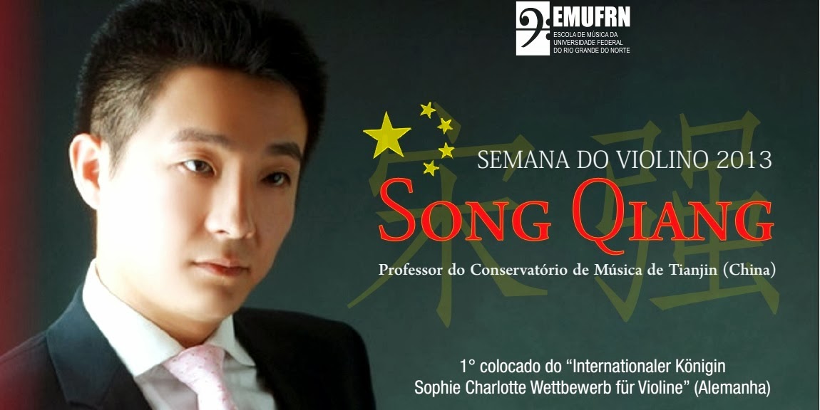 A Semana do Violino 2013 que tem como convidado especial o violinista chinês Song Qiang, professor do Conservatório de Música de Tianjin, na China para encerramento na próxima sexta-feira (13). Durante a Semana, o violinista apresenta recitais e masterclasses gratuitos. Song foi 1° colocado no “Internationaler Königin Sophie Charlotte Wettbewerb für Violine” (Alemanha) e 2° colocado no “Concorso Violinistico Internazionale Andrea Postacchini” (Itália). São três recitais com repertório e formato exclusivo para cada dia. No dia 13, o violinista realiza recital solo, recebendo acompanhamento do pianista Durval Cesetti. A primeira apresentação aconteceu no último sábado. As apresentações acontecem às 20h, no Auditório Onofre Lopes.