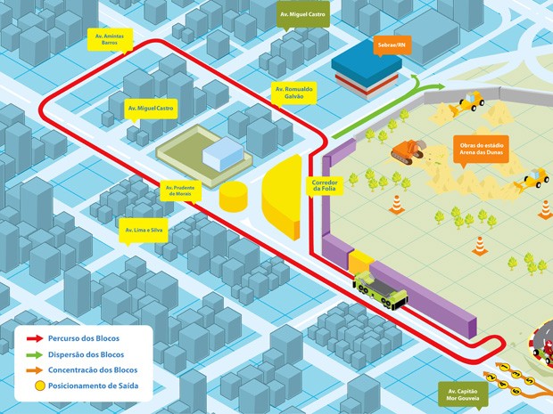 Com o objetivo de orientar e garantir a segurança dos foliões nas vias durante os quatro dias de folia do Carnatal 2012 – o carnaval fora de época de Natal –, a Secretaria Municipal de Mobilidade Urbana (Semob) montou uma operação especial para o trânsito no entorno das obras de construção do estádio Arena das Dunas e adjacências, no bairro de Lagoa Nova, onde será realizado o evento. A micareta começa nesta quinta-feira (6) e segue até o domingo (9).