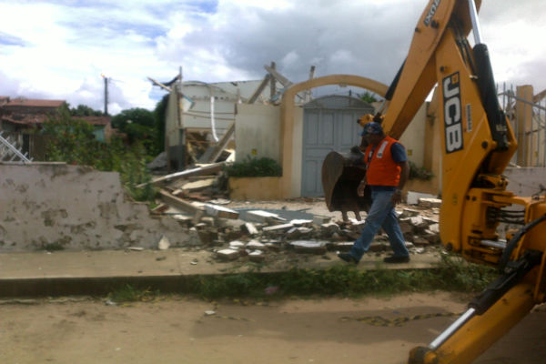 A demolição da estrutura da igreja de São Bartolomeu, no conjunto Vila Paraíso, na zona Norte, será concluída ainda nesta terça-feira (9). Foi o que informou a Defesa Civil de Natal (DCN). Ontem à noite, a Secretaria Municipal de Meio Ambiente e Urbanismo (Semurb) demoliu parcialmente a estrutura, que está comprometida e desde o sábado (6) corria o risco de desabar. Desde a manhã de hoje (9), a Companhia de Serviços Urbanos de Natal (Urbana) está realizando a retirada dos entulhos dessa demolição inicial. A expectativa inicial era que a derrubada da estrutura ocorresse somente após a limpeza de parte do entulho já acumulado, mas o trabalho para a demolição das duas paredes que estavam intactas teve início antes mesmo do recolhimento da metralha.