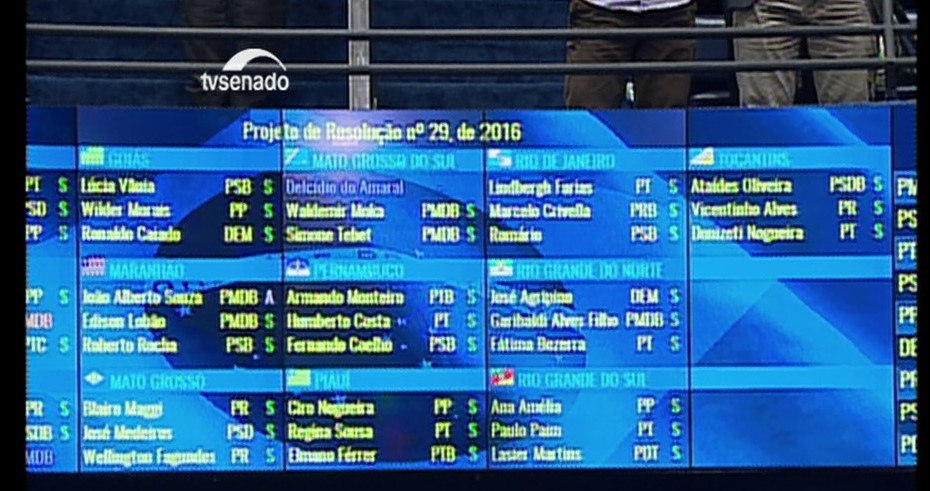 Por 74 votos favoráveis e uma abstenção, o Senado Federal decidiu, na noite desta terça-feira (10/5), cassar o mandato do senador Delcídio do Amaral (Sem partido-MS). Ele teve o pedido de cassação de mandato por quebra de decoro parlamentar aprovado no colegiado após um longo processo iniciado logo depois do senador ter sido preso, em novembro do ano passado por obstrução da Justiça. Delcidio foi flagrado em conversa com o filho do ex-diretor da Petrobras, Nestor Cerveró, oferecendo propina e um plano de fuga para que Cerveró não firmasse acordo de delação premiada com o Ministério Público no âmbito da Operação Lava Jato. Delcídio, posteriormente, disse que a tentativa de atrapalhar as investigações foi feita a pedido do ex-presidente Luís Inácio Lula da Silva e da presidenta Dilma Rousseff. Lula e Dilma deram declarações negando as acusações e afirmando que o senador agiu por vingança. A representação contra o senador Delcídio do Amaral foi apresentada em dezembro do ano passado pela Rede e pelo PPS. Os advogados de defesa chegaram a pedir que a cassação de mandato fosse substituída por outras penas alternativas, como advertência ou afastamento temporário do Senado, mas os pedidos não foram acatados pelo relator.