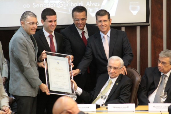 O senador Garibaldi Alves foi homenageado na manhã desta segunda-feira (27) com a medalha do Mérito Legislativo José Augusto na Assembleia Legislativa. A sessão solene aconteceu no plenário da Assembleia, com a presença do ministro Garibaldi Alves Filho, do presidente da Câmara Federal, Henrique Eduardo Alves, da governadora Rosalba Ciarlini, entre outras autoridades políticas. Garibaldi Alves completa 90 anos hoje e foi vice-governador do estado entre 1987 e 1991 e foi deputado estadual nos mandatos iniciados em 1958, 1962 e 1966.