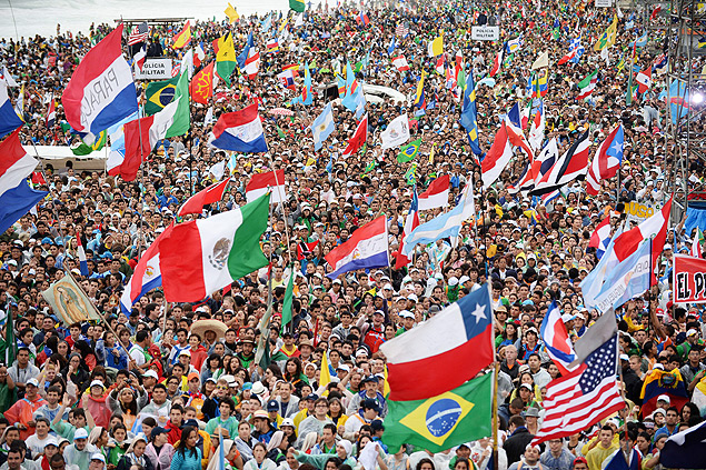 Será realizada agora as 18hs a Missa solene de abertura da JMJ (Jornada Mundial da Juventude), que será celebrada pelo arcebispo do Rio de Janeiro, Dom Orani João Tempesta. Bandeiras do Brasil, Estados Unidos, Grã-Bretanha, além de quase todos os países da América do Sul, como a Argentina, terra do papa, estão no local onde acontecerá a missa, carregadas por grupos de religiosos. Nas ruas próximas do hotel Copacabana Palace não dá para andar pelas calçadas. O povo ocupa as ruas e entoam cânticos. Mas o papa Francisco não participará do evento desta noite. O papa ficará na residência oficial onde está hospedado, e presidirá missas privadas.