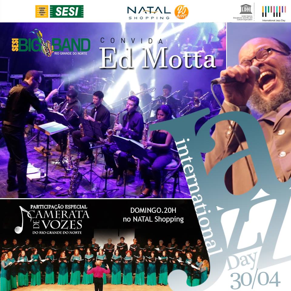 No domingo (30), a SESI BIG BAND convida Ed Motta para show em comemoração ao Dia Internacional do Jazz (International Jazz Day) celebrado em mais de 185 países e, Natal, será a única capital do Nordeste a participar deste evento mundial. A apresentação é gratuita e vai acontecer no estacionamento externo do Natal Shopping, às 20h. A Camerata de Vozes do Rio Grande do Norte também fará participação.