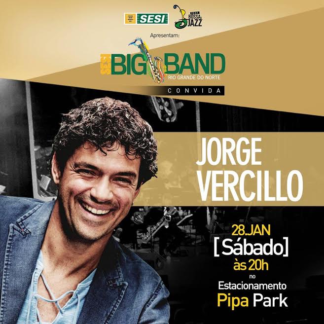 Dia 28 de janeiro tem grande show na Praia da Pipa/RN com a SESI BIG BAND convida Jorge Vercillo. Promovido pelo Sesi RN em parceria com a Juçara Figueiredo Produções, o evento acontecerá no espaço Pipa Park, a partir das 20 horas. Além da participação de Vercillo, o evento terá sua abertura feita pela Potiguar, agora erradicada em Nova Iorque, Liz Rosa em apresentação com quarteto de músicos da terra.
