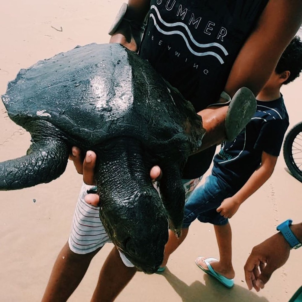 Pelo menos 13 animais foram atingidos pelo óleo – nove tartarugas e uma ave foram encontradas mortas ou morreram após o resgate.