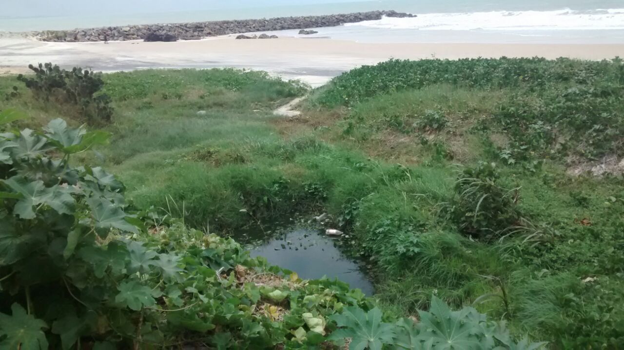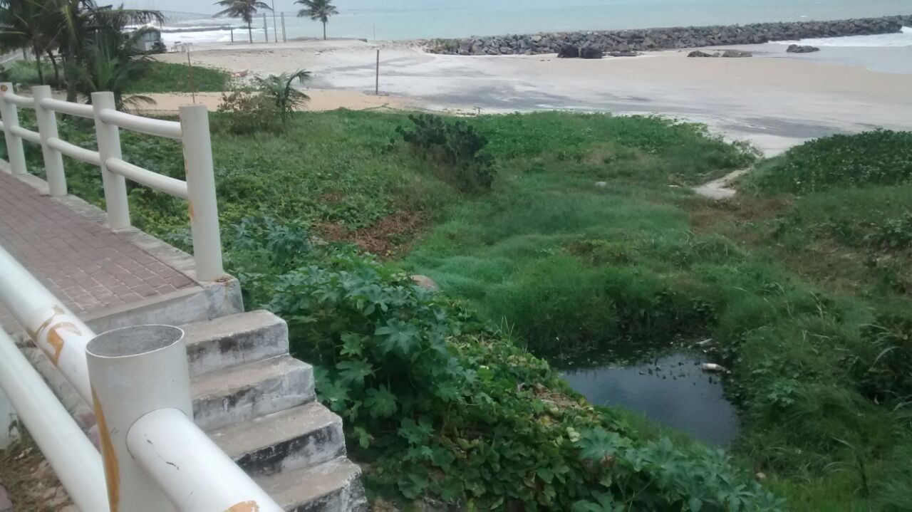Acima, fotos que mostram o acumulo de água servida e água de chuva em terreno já compactado pelo tempo, em frente a praia de Miami. Essa pequena “lagoa” é antiga e permanece assim há muito tempo, colocando os moradores da área em permanente risco de contrair doenças transmitidas por mosquitos, dentre eles, o Aedes Egyptis, que causa a dengue. Fica o apelo às autoridades competentes, para que essa anomalia seja também reparada, urgentemente.
