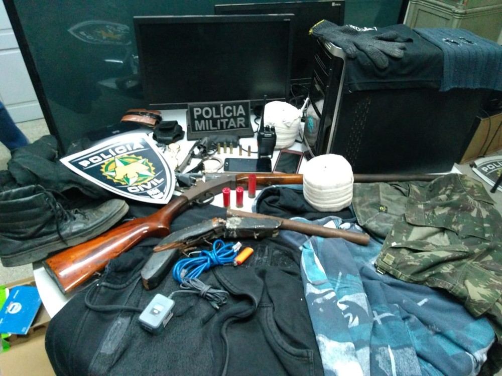 Também foram apreendidos duas espingardas, um revólver e munições.