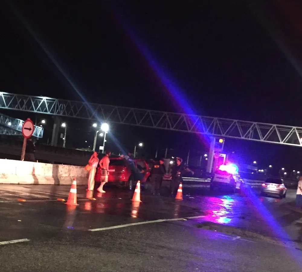 Após chegar ao local, os policiais realizaram diligências e localizaram os criminosos. Eles atiraram contra os militares, causando uma troca de tiros. A perseguição chegou até a BR 101, quando os suspeitos perderam o controle do veículo e bateram em um viaduto.