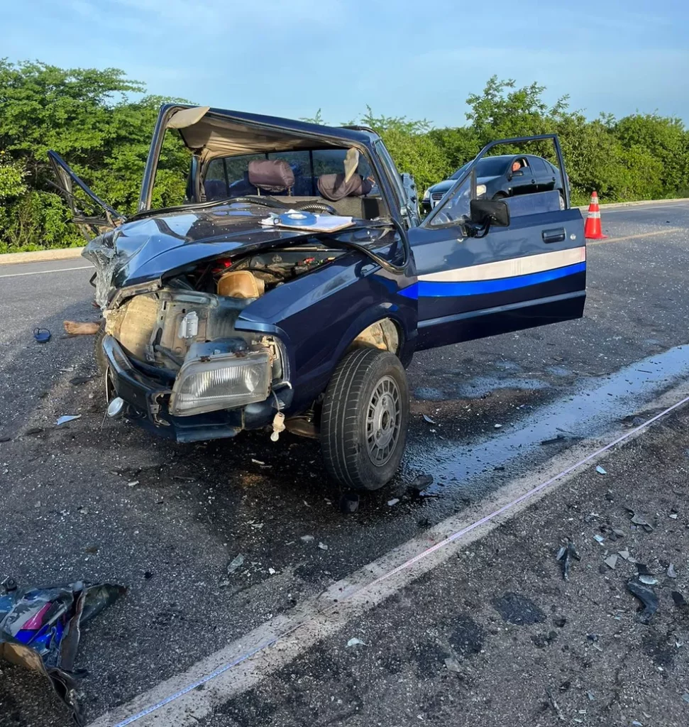 Homem morre e carro fica destruído após colisão de frente em outro veículo na BR-304