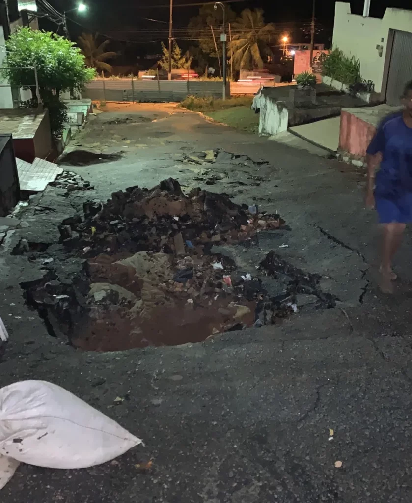 Chuva abre cratera em rua na Zona Oeste de Natal