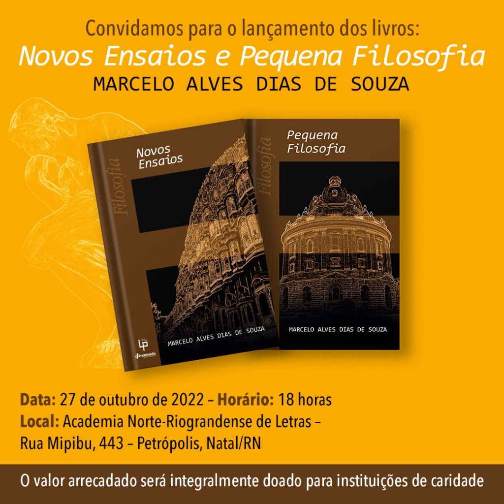 Procurador e escritor Marcelo Alves Dias de Souza lança dia 27 de outubro os livros “Novos ensaios” e “Pequena filosofia” com renda beneficente