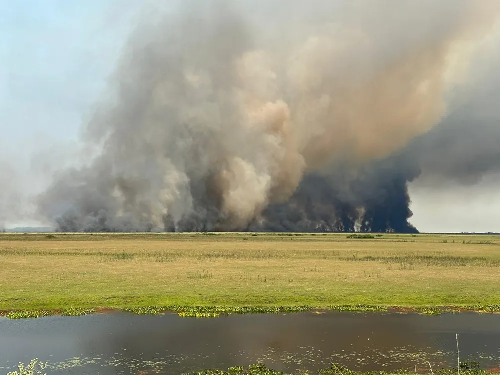 O fogo teria começado após um raio cair na vegetação, próximo à BR-471, em Santa Vitória do Palmar.
