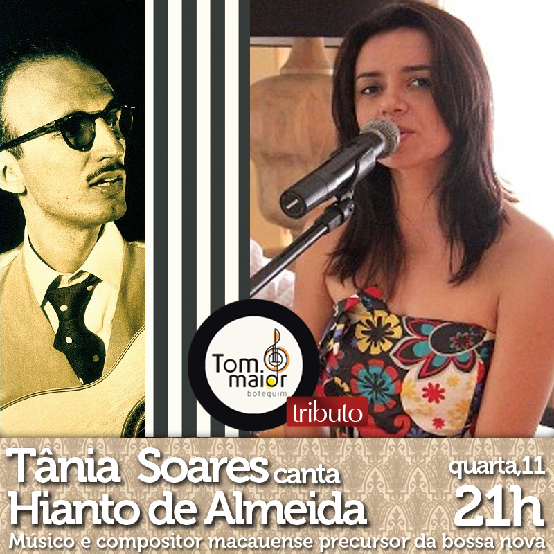 Amanhã, as 21hs no Tom Maior, anexo do Restaurante Maturi, Próximo a Promater, a intérprete potiguar Tânia Soares canta Hianto de Almeida, compositor macauense, um dos precursores da Bossa Nova. Será a Noite de Elegância da Música do RN para o Brasil.