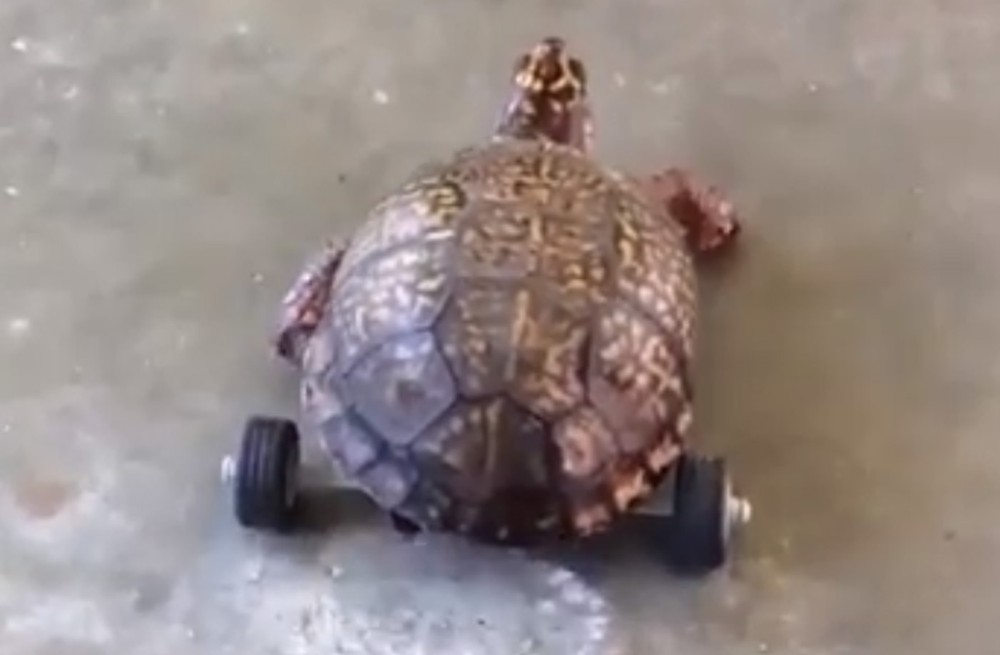 Pedro, a tartaruga, foi adotado por uma família sem ter uma das patas de trás. Depois de um tempo, ele fugiu e voltou sem a outra. Ficou meses perdido. Foi então que a dona, Sandra Taylor, resolveu levá-lo até a faculdade de medicina veterinária da Universidade do Estado da Luisiana: ele recebeu uma prótese veicular feita com Lego.