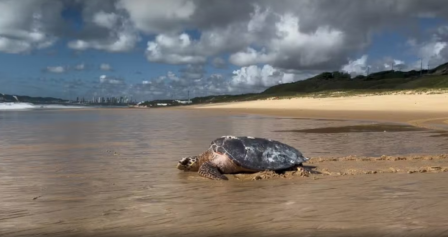 Na manhã do último sábado (29), após a recuperação, a tartaruga voltou ao mar na Via Costeira, em Natal.