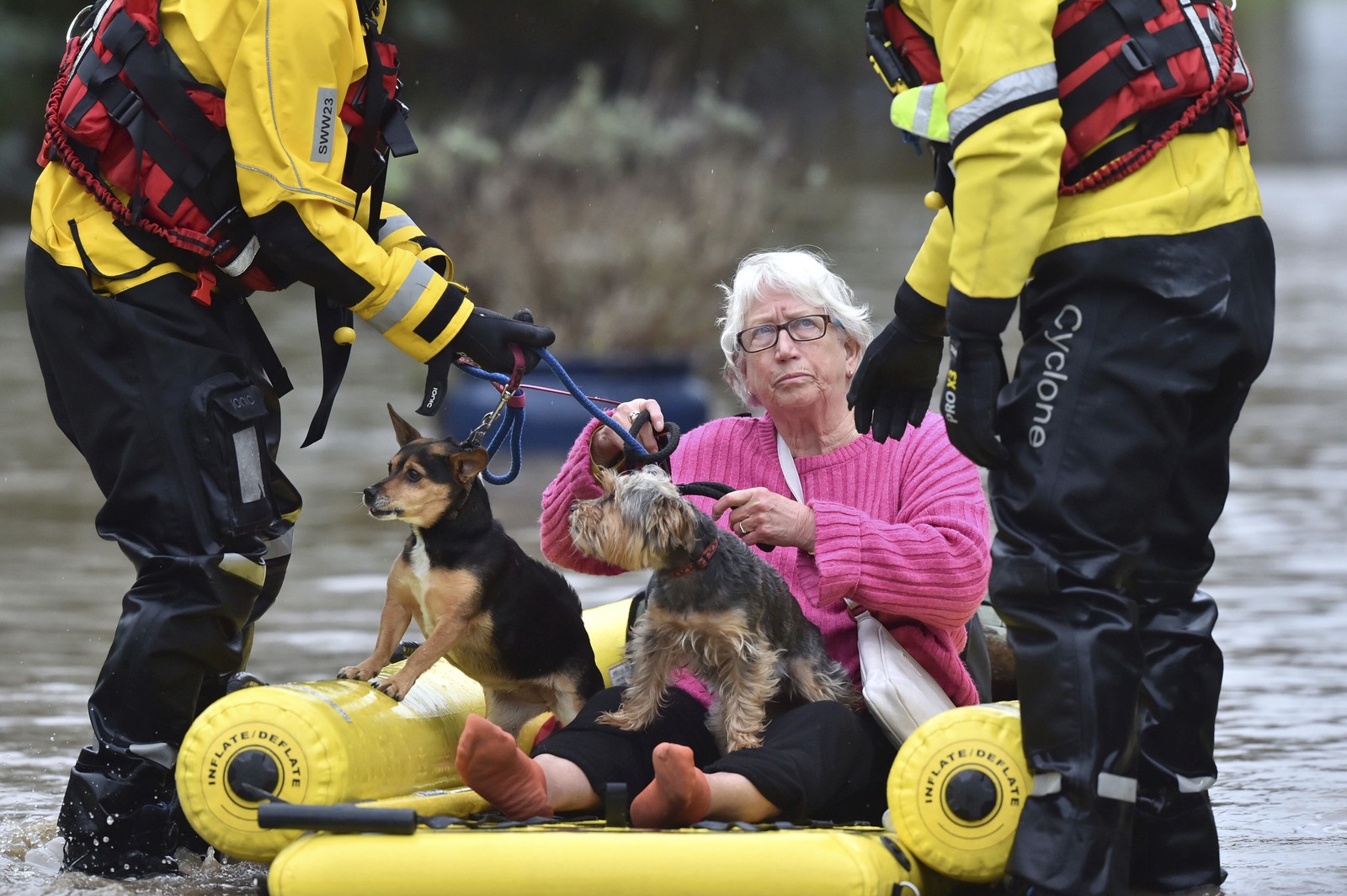 A tempestade Dennis continuou a causar inundações no Reino Unido neste domingo (16), com ventos que atingiram velocidade superior a 140 km/h. Equipes de resgate precisaram usar botes para resgatar pessoas ilhadas em casas no País de Gales.