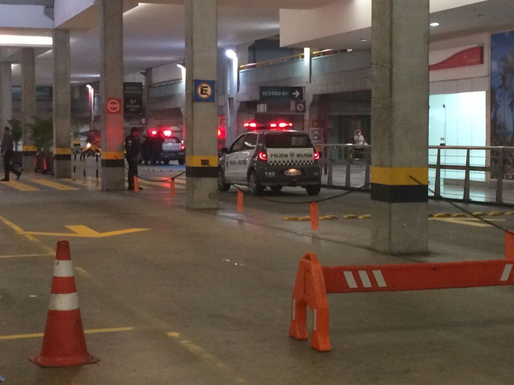 Houve correria e pânico nas lojas próximas ao local. Dois tiros atingiram o vidro de uma clínica médica que fica no estacionamento do Midway.